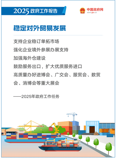 2025年要扩大高水平对外开放,积极稳外贸稳外资。无论外部环境如何变化,始终坚持对外开放不动摇,稳步扩大制度型开放,有序扩大自主开放和单边开放,以开放促改革促发展